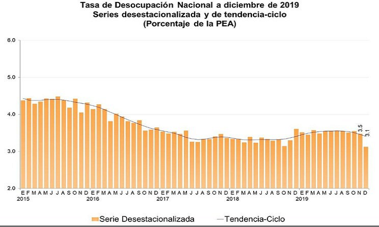 Con una tasa de 3.1 por ciento, el desempleo se ubicó por debajo de 3.5 por ciento reportado en noviembre y también por debajo de 3.6 de diciembre de 2018.