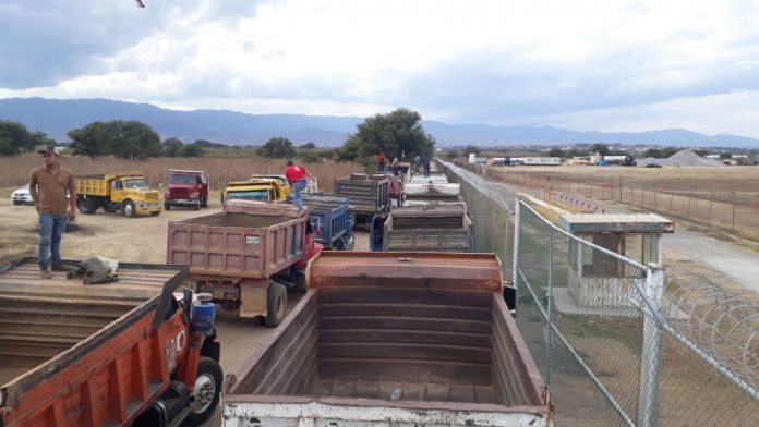 Oaxaca de Juárez. La tarde de este jueves se reportó la concentración de volteos, cerca de los trabajos de ampliación y remodelación del Aeropuerto Internacional Benito Juárez de Oaxaca.