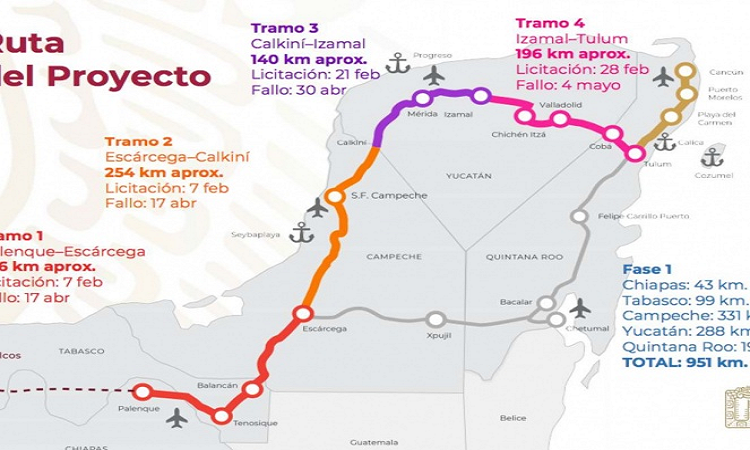 Los dos primeros tramos puestos en licitación son Palenque – Escárcega y Escárcega – Calkiní, que serán abiertas el 7 de febrero, los fallos se darán a conocer el 17 de abril y las obras deberán iniciar el 30 de abril.
