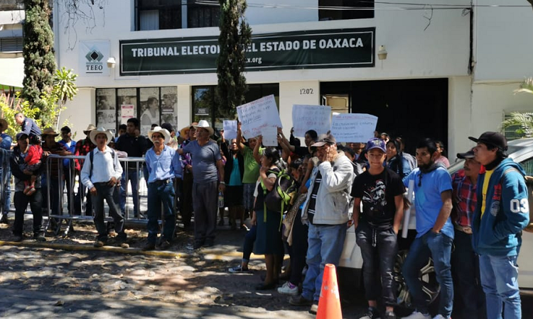 Oaxaca de Juárez. Pobladores de San Francisco Chapulapa protestaron este miércoles en las oficinas del Tribunal Electoral del Estado de Oaxaca (TEEO) para exigir la anulación de las elecciones efectuadas en el 2019.