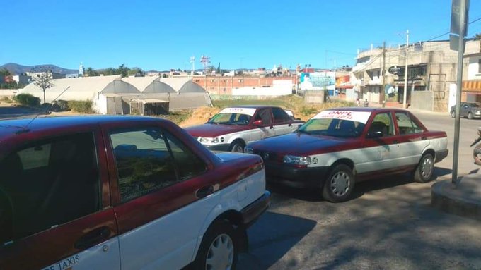 Oaxaca de Juárez. Taxistas de los sitios “Santa Teresa y Nueve Llaves”, adheridos a la Organización Nacional de Proletarios en Lucha (ONPL), realizaron diversos bloqueos en Huajuapan de León, en la región de la Mixteca, para exigir la restitución de su base que fue removida de la colonia Centro.