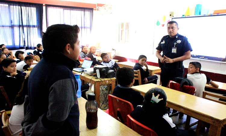 “El Gobierno Municipal lleva a cabo trabajos en coordinación con la Guardia Nacional bajo la premisa de brindar orientación y pláticas informativas con la meta de prevenir prácticas de conductas antisociales entre las niñas y niños y, de esta manera, generar espacios armónicos entre alumnas y alumnos de las escuelas primarias públicas”, destacó la funcionaria pública al lado de catedráticos de la escuela “Revolución Mexicana”.