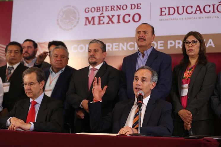 En conferencia de prensa, el secretario de Educación Pública, Esteban Moctezuma Barragán, y el subsecretario de Prevención y Promoción de la Salud, Hugo López Gatell, anunciaron nuevas medidas para combatir el Covid-19 en las escuelas, públicas y privadas, del país, como la implementación de tres filtros para el ingreso de los menores al plantel escolar.