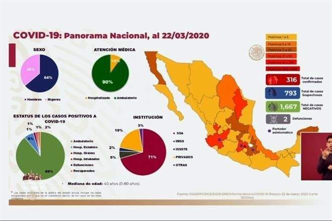La Secretaría de Salud confirmó 65 nuevos casos de Covid-19, con lo que suman 316 contagiados en el País.