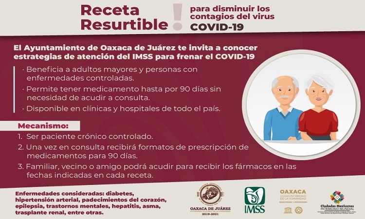 Refrendando que la unión de esfuerzos y colaboración entre instituciones permitirá preservar la salud de las y los ciudadanos ante la presente emergencia sanitaria, el Ayuntamiento de Oaxaca de Juárez invita a la ciudadanía a conocer y hacer uso de las tres estrategias emitidas por el Instituto Mexicano del Seguro Social (IMSS) para sus derechohabientes, con el propósito de evitar el riesgo de propagación y contagio de COVID-19.