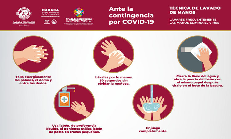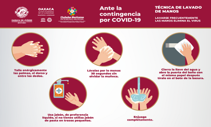 El Ayuntamiento de Oaxaca de Juárez continúa exhortando a la población a reforzar las medidas preventivas de higiene personal para evitar la propagación del COVID-19, como lo son el lavado de manos con agua y jabón, así como seguir los lineamientos de la Jornada Nacional de Sana Distancia y de mantenerse en casa.