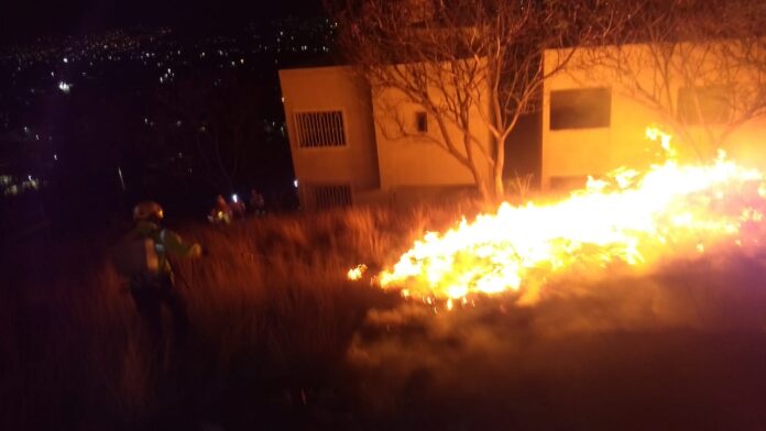 Los más de 100 combatientes formaron tres frentes desde los cuales han controlado y sofocado en su totalidad el incendio de pastizales que se encontraba cerca de viviendas ubicadas en las faldas de este cerro.