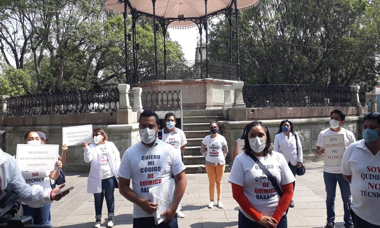 Oaxaca de Juárez. Químicos de los Servicios de Salud de Oaxaca (SSO), exigieron la recategorización y la asignación del código funcional de Químico “A”, toda vez que siguen laborando como quimicos laboratoristas.