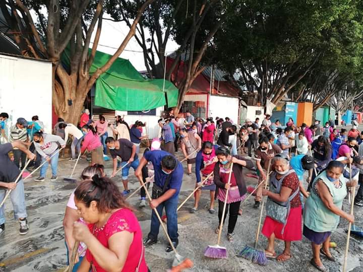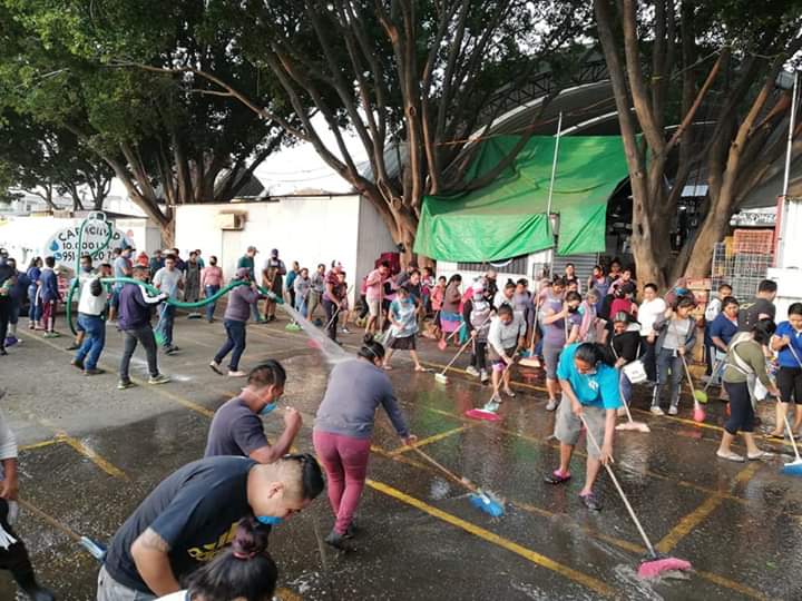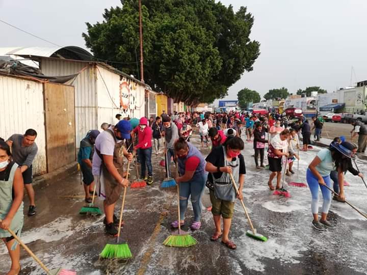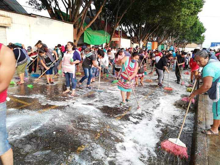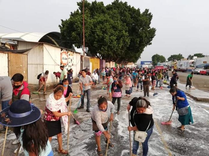 Oaxaca de Juárez.- Como medida de prevención contra la pandemia de coronavirus COVID-19 locatarios de la Central de Abasto realizaron la limpieza de la zona y anunciaron un nuevo horario de servicio.