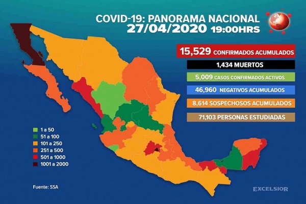 CIUDAD DE MÉXICO.- Autoridades de la Secretaría de Salud federal (Ssa) informaron en conferencia de prensa que el número de casos confirmados de la nueva cepa de coronavirus Covid-19 aumentó a 15,529 en México.