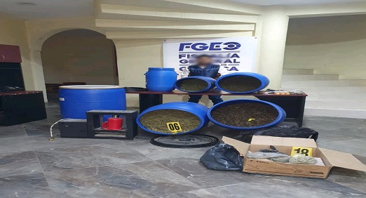 Como resultado del cateo, fueron asegurados 6 recipientes que contenían la droga conocida como marihuana, una prensa para confeccionar paquetes (ladrillos) con marihuana y una báscula digital. Además, se aseguraron más de 100 cartuchos de calibres .22, 7.62 y 30 30 y 2 cargadores para arma larga.