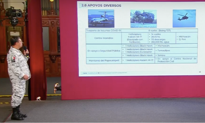 El general Luis Cresensio Sandoval, secretario de la Defensa Nacional, informó hoy que en operaciones de combate a la inseguridad, decomiso de droga, apoyo a la política migratoria y la emergencia sanitaria están desplegados 150 mil 731 efectivos de la Guardia Nacional, el Ejército y la Marina.