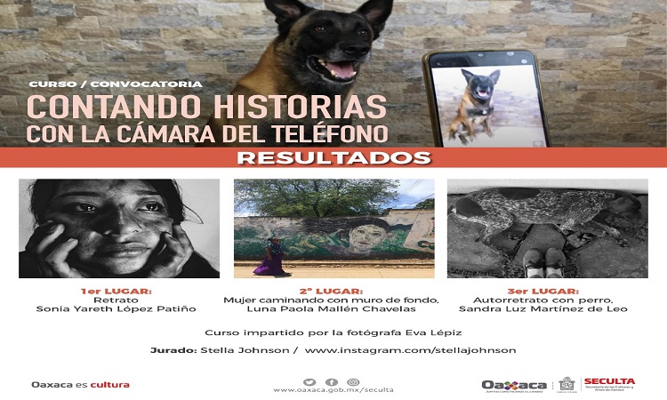 La Secretaría de las Culturas y Artes de Oaxaca (Seculta), anunció los tres trabajos ganadores del curso virtual “Contando historias con la cámara del teléfono”, impartido durante el mes de mayo por la fotógrafa Eva Lépiz, y que tuvo como jurado a Stella Johnson.