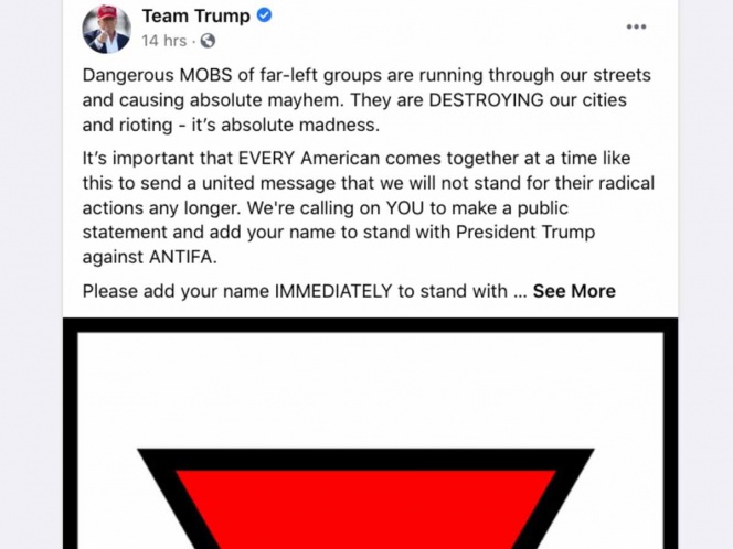 Facebook retiró publicidad publicada por la campaña electoral de Donald Trump que atacaba a la izquierda y mostraba un triángulo rojo invertido, símbolo utilizado por los nazis para designar a los presos políticos en los campos de concentración.