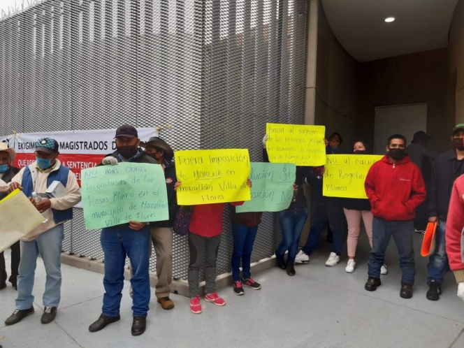 Por 28 votos ganó el presidente de nosotros y el triunfo se lo dieron a la planilla azul. Nosotros venimos a este tribunal de la federación para que intervenga porque los de la planilla azul violaron nuestros derechos como habitantes del municipio de Mazatlán de Villa de las Flores y por eso venimos para que nos regresen a nuestro presidente al poder Heraclio Martínez García”, señalaron Gregorio Torres y Germán García Marín, afectados.