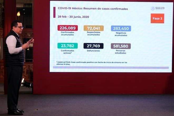 La Secretaría de Salud reportó 648 nuevas muertes por Covid-19 en México, con lo que suman 27 mil 769; hay 226 mil 89 casos confirmados, 5 mil 432 más que ayer.