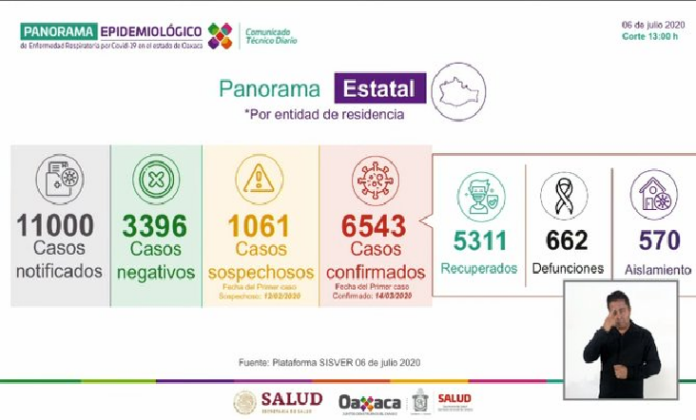 De acuerdo a los Servicios de Salud de Oaxaca (SSO), el estado registró 92 nuevos casos positivos en las últimas 24 horas, por lo que el número de personas contagiadas por este virus llegó este lunes a seis mil 543.