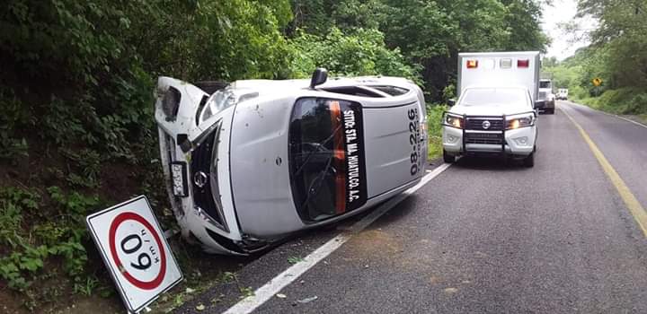 Oaxaca de Juárez. El conductor de un taxi sufrió una aparatosa volcadura en el municipio de Santa María Huatulco, en la región de la costa oaxaqueña.