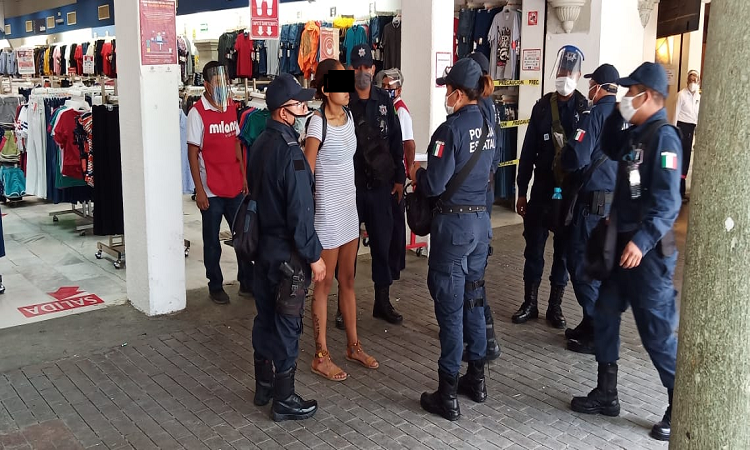 Tras esta situación, personal de la tienda solicitaron auxilio de la policía municipal quien logró la detención de la joven.
