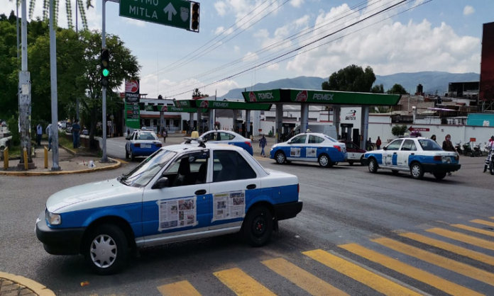 Oaxaca de Juárez. Taxistas foráneos agremiados a la Confederación Libertad de Trabajadores de México instalaron diversos bloqueos en la capital oaxaqueña.