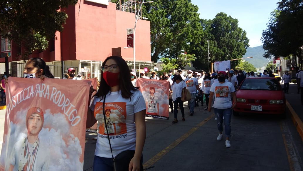 Oaxaca de Juarez. Familiares, amigos y conocidos de Rodrigo Abed Mancha de 17 años, asesinado hace dos semanas en Oaxaca marcharon de la fuente de las 8 regiones al zócalo de la ciudad capital.