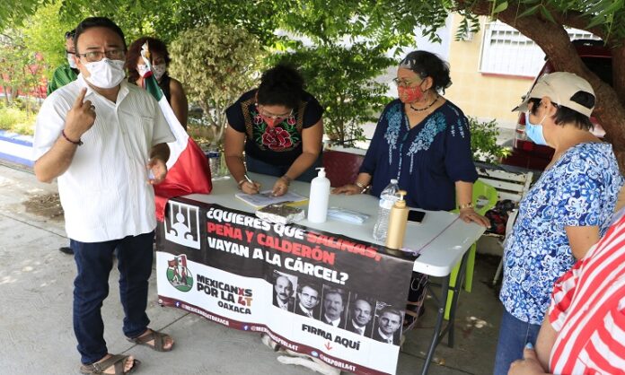 El legislador Pável Meléndez informó que a lo largo y ancho de la región del Istmo se instalaron módulos para la recolección de firmas, apoyado por el colectivo “Mexicanos por la 4T” e integrado por activistas y ciudadanos organizados que buscan por la ruta legal llevar a la cárcel a los corruptos.