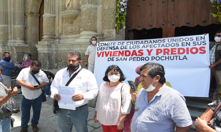 Oaxaca de Juárez. Pobladores de San Pedro Pochutla, agremiados al Comité de Ciudadanos Unidos en Defensa de los Afectados en sus Viviendas y Predios, exigieron a la Secretaría de Comunicaciones y Transportes (SCT), el pago de indemnización por el uso de sus predios para el paso de la autopista Oaxaca-Puerto Escondido, desde hace 50 años.