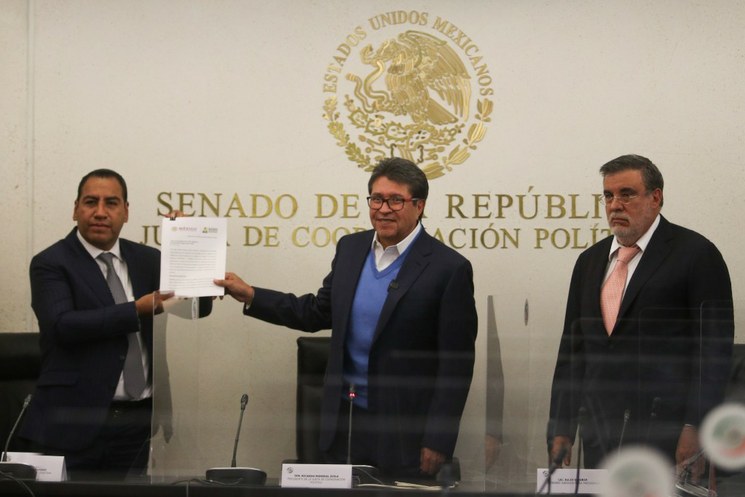 El presidente de la Junta de Coordinación Política, Ricardo Monreal, recibió el documento y lo entregó al presidente del Senado, Eduardo Ramírez, a fin de que el pleno lo conozca y lo remita de inmediato a la Suprema Corte de Justicia, para que dé validez constitucional o no a la pregunta que se formula para realizar la consulta.