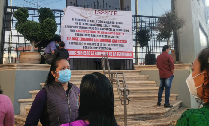 “La base trabajadora y de confianza que labora en esta dependencia trabaja bajo protesta derivado de la ausencia de protocolos ante casos positivos de COVID-19”, informaron.