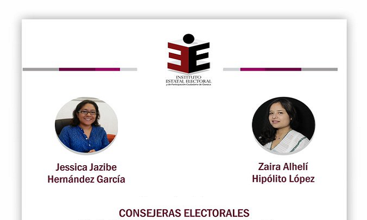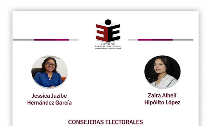 Oaxaca de Juárez. Por unanimidad, el Consejo General del Instituto Nacional Electoral (INE), aprobó las designaciones de Jessica Jazibe Hernández García y Zaira Alhelí Hipólito López, para ocupar el cargo de consejeras del Instituto Estatal Electoral y de Participación Ciudadana de Oaxaca (IEEPCO).