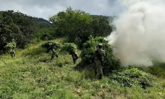 Oaxaca de Juárez. Elementos del ejército mexicano destruyeron plantíos de marihuana en la región de la Sierra Sur de Oaxaca.