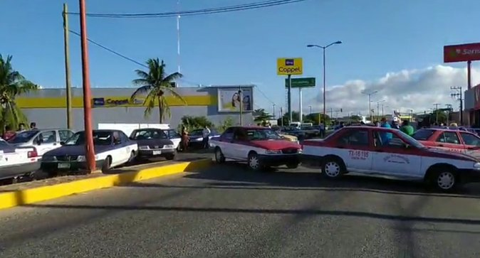 Oaxaca de Juárez. Taxistas de diversos sitios del municipio de Juchitán de Zaragoza, iniciaron un bloqueo sobre la carretera federal Transístmica 185, en la agencia automotriz Nissan a un costado del puente de fierro.