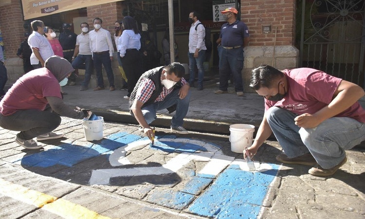 Para hacer cumplir los objetivos de movilidad incluyente, el Ayuntamiento de Oaxaca de Juárez, a través de la Secretaría Municipal y con el apoyo de otras áreas del gobierno capitalino, reanudó los trabajos de repintado de los cajones de estacionamiento para personas con discapacidad, ubicados en el primer cuadro de la ciudad. En esta segunda etapa se rehabilitaron 28 espacios.
