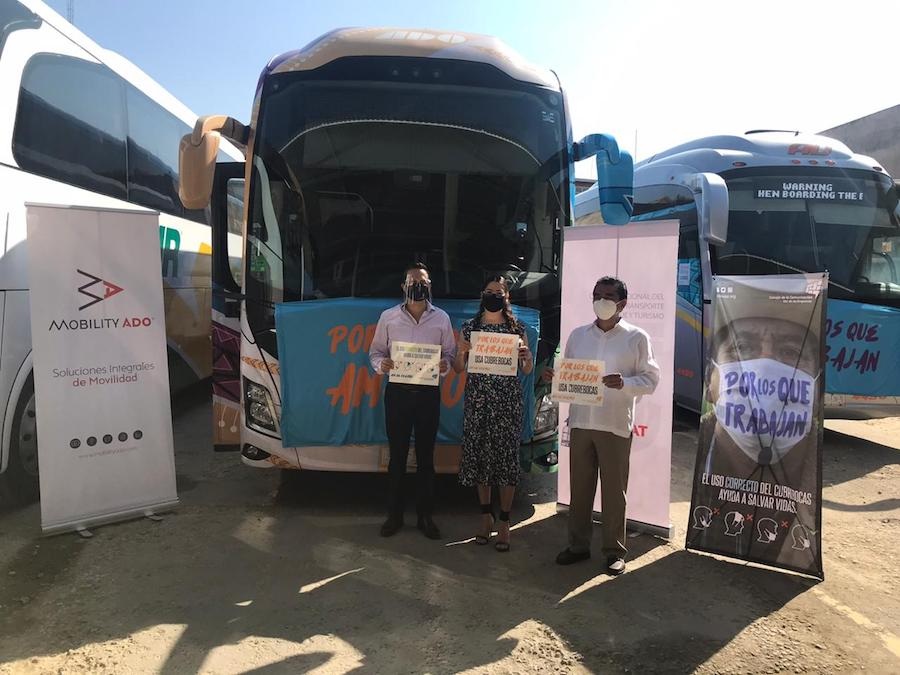 “A partir de hoy, nuestros afiliados que operan en las terminales del estado de Oaxaca serán embajadores de esta causa, llevando en sus unidades el mensaje del uso correcto del cubrebocas. Agradezco a las empresas que colaboraron en la campaña de “Transporte Gratuito a Personal Médico” que inició en abril y concluyó en septiembre sumando más de 85 mil beneficiados”, afirmó.