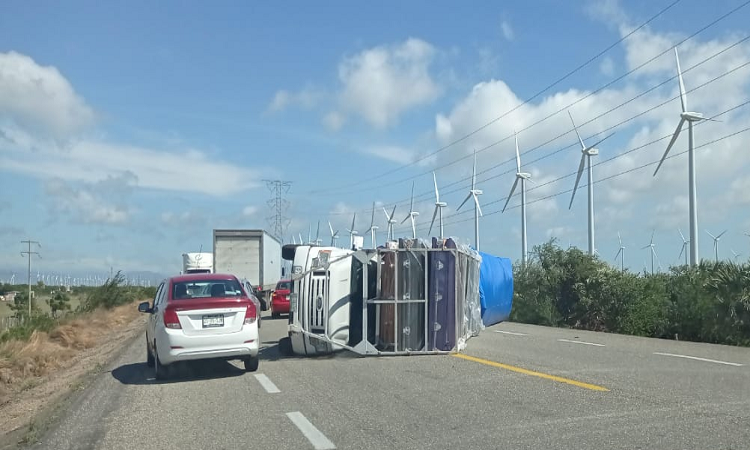 Oaxaca de Juárez. Debido a los fuertes vientos ocasionados por el evento de norte en el Istmo de Tehuantepec, este miércoles se registró una nueva volcadura en el tramo carretero de Ciudad Ixtepec-La Ventosa en el Istmo de Tehuantepec.
