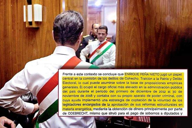 Como cabeza de un aparato de poder criminal, el Presidente Enrique Peña Nieto jugó un papel central en la comisión de delitos de traición a la patria y cohecho en el caso Odebrecht, afirma la Fiscalía General de la República.
