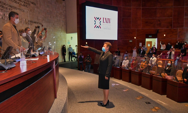 En sesión ordinaria la legisladora del distrito XXII con cabecera en Santiago Pinotepa Nacional tomó protesta ante el pleno del congreso para presidir la Jucopo durante el tercer año de ejercicio legal de la 64 legislatura.