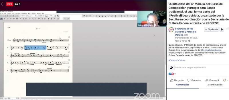 Dichas actividades se realizan a través de grabaciones en espacios locales y serán transmitidas a través de redes sociales y plataformas digitales, ubicando a Oaxaca como centro de desarrollo musical para el sur-sureste de México.