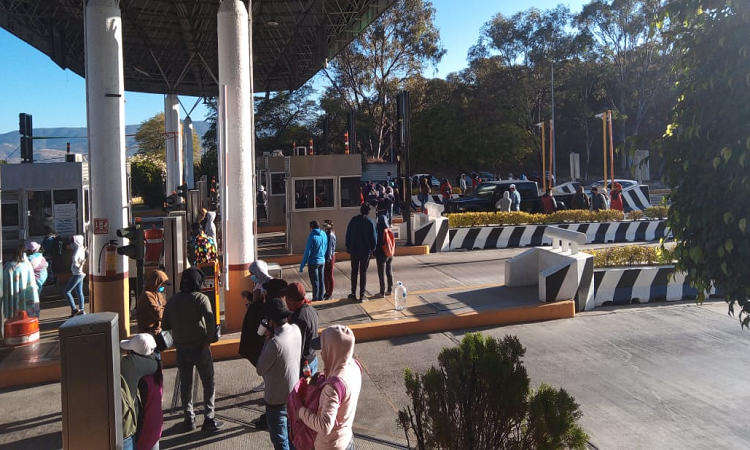 Oaxaca de Juárez. Estudiantes de la Coordinadora Estudiantil Normalista del Estado de Oaxaca (CENEO) tomaron este viernes la caseta de peaje de San Pablo Huitzo, ubicada en la autopista Oaxaca-Cuacnopalan.