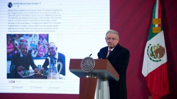 López Obrador anunció ayer la salida de Romo de la Oficina de la Presidencia, aunque indicó se mantendrá como el principal enlace del gobierno federal con el sector privado.