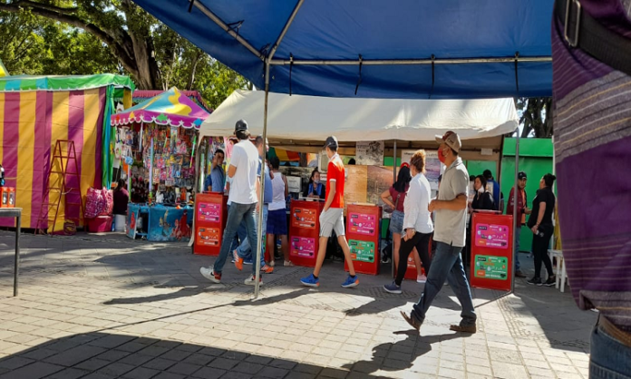 Juegos mecánicos que atraen a familias enteras, rodeados de puestos de comida y juguetes, fueron colocados por los comerciantes informales en el primer cuadro del centro histórico de la capital oaxaqueña.