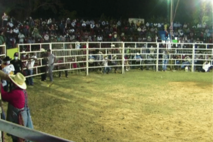 En el municipio de Santos Reyes Nopala, sin importarles la pandemia por Covid 19, se organizó un jaripeo como parte de los festejos de su Santo Patrón.