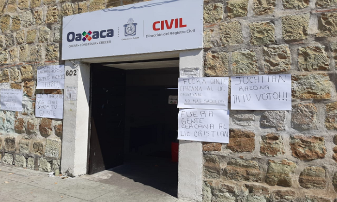 Oaxaca de Juárez. Trabajadores de la Dirección del Registro Civil ubicada en la calle de García Vigil en el centro de la ciudad de Oaxaca se manifestaron en su centro de trabajo para denunciar diversas irregularidades.