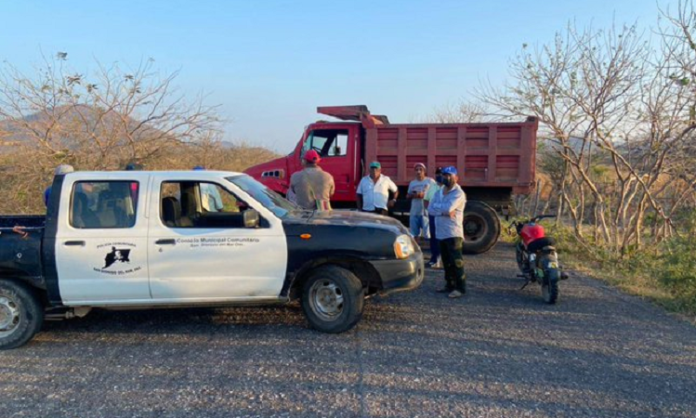 Los manifestantes atravesaron una camioneta y un volteo para impedir el paso a esta comunidad huave, afectando a quienes intentan ingresar o salir de la misma.