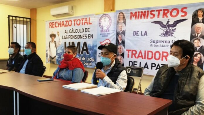 Oaxaca de Juárez. Integrantes de la Sección 22 de la Coordinadora Nacional de Trabajadores de la Educación (CNTE) rechazaron la determinación de la Suprema Corte de Justicia de la Nación (SCJN) para que el pago de sus pensiones sea en Unidades de Medida de Actualización (UMA) y no en salarios mínimos.