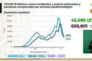 Según la información presentada, se estima que 45 mil 85 contagios, el 2 por ciento del total acumulado, son los casos activos, que son quienes han presentado signos y síntomas de coronavirus.