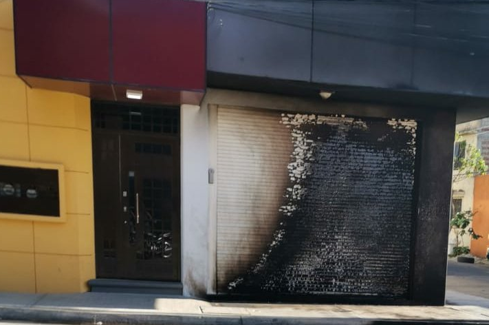 El fuego solo provocó afectaciones en la pared y una cortina de fierro del inmueble, mientras que al interior no se reportaron daños.