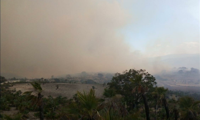 Oaxaca de Juárez. Pobladores y autoridades de Bienes Comunales solicitaron apoyo del gobierno del estado para sofocar un incendio en el municipio de San Juan Tamazola, en la región Mixteca.
