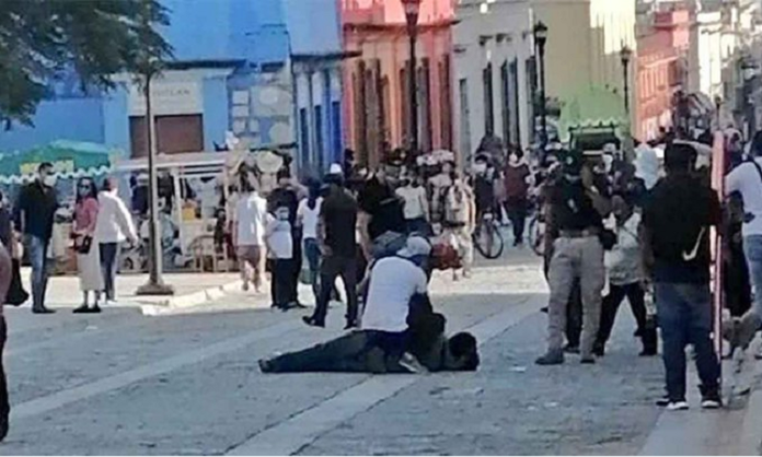 Oaxaca de Juárez. El inspector municipal atacado por la espalda por un comerciante salvadoreño, frente al templo de Santo Domingo, falleció este jueves.