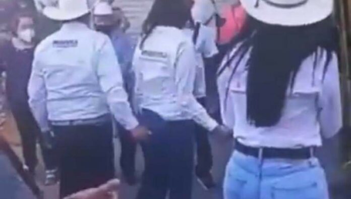 En ese momento, Monreal aprovecha el cambio de rumbo para tocar por el brazo a una mujer y después pasa la mano sobre su trasero. La mujer reacciona con sorpresa al “tocamiento” del candidato, quien sigue con su ruta como si nada.